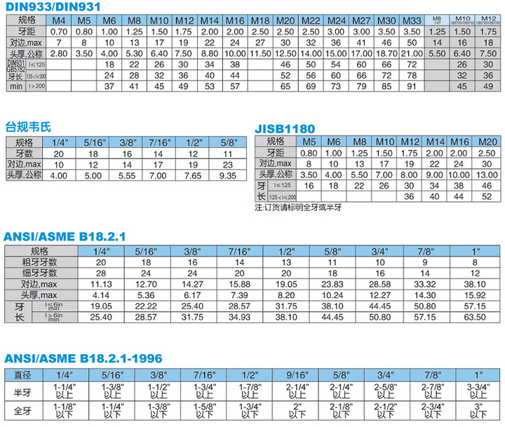 DIN933、GB5783、14P、ANSI B18.2.1、JISB 1180